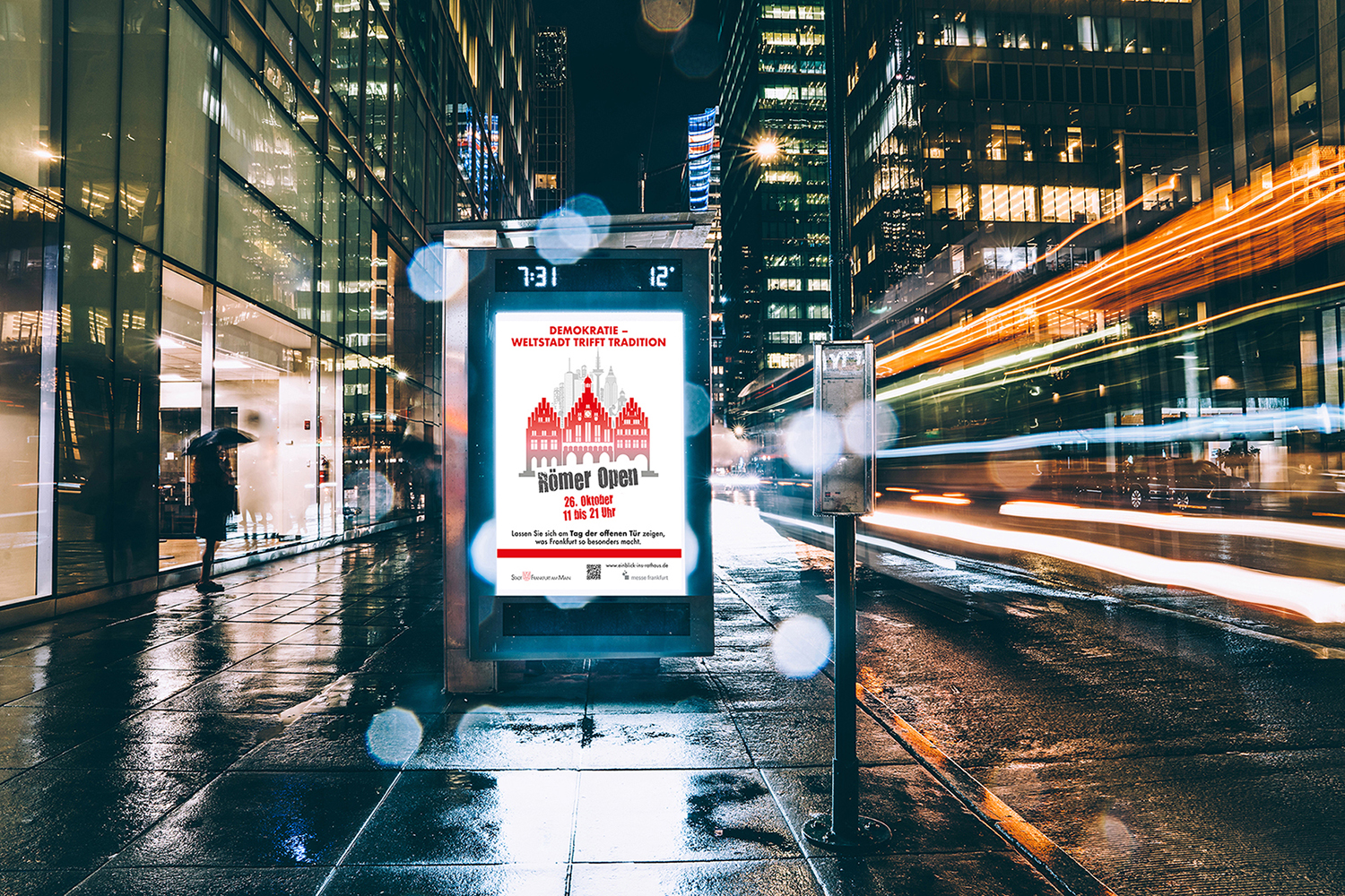 Unter dem Motto „Demokratie – Weltstadt trifft Tradition“ öffnete die Stadt Frankfurt die Türen des Frankfurter Römers für den Tag der offenen Tür. Das Ereignis lockte mehrere Tausend Frankfurter auf den Römerberg. Für die betreuende Frankfurter Event-Agentur PP LIVE entwickelte BAUER MEDIEN DESIGN die Wort-/Bildmarke und ein umfassendes Programm an Kommunikationsmaßnahmen